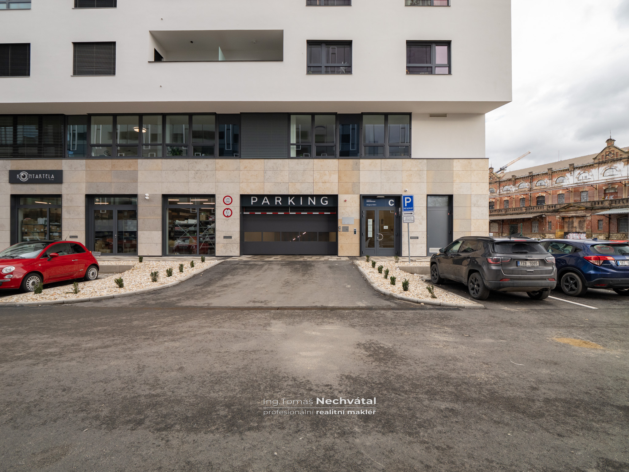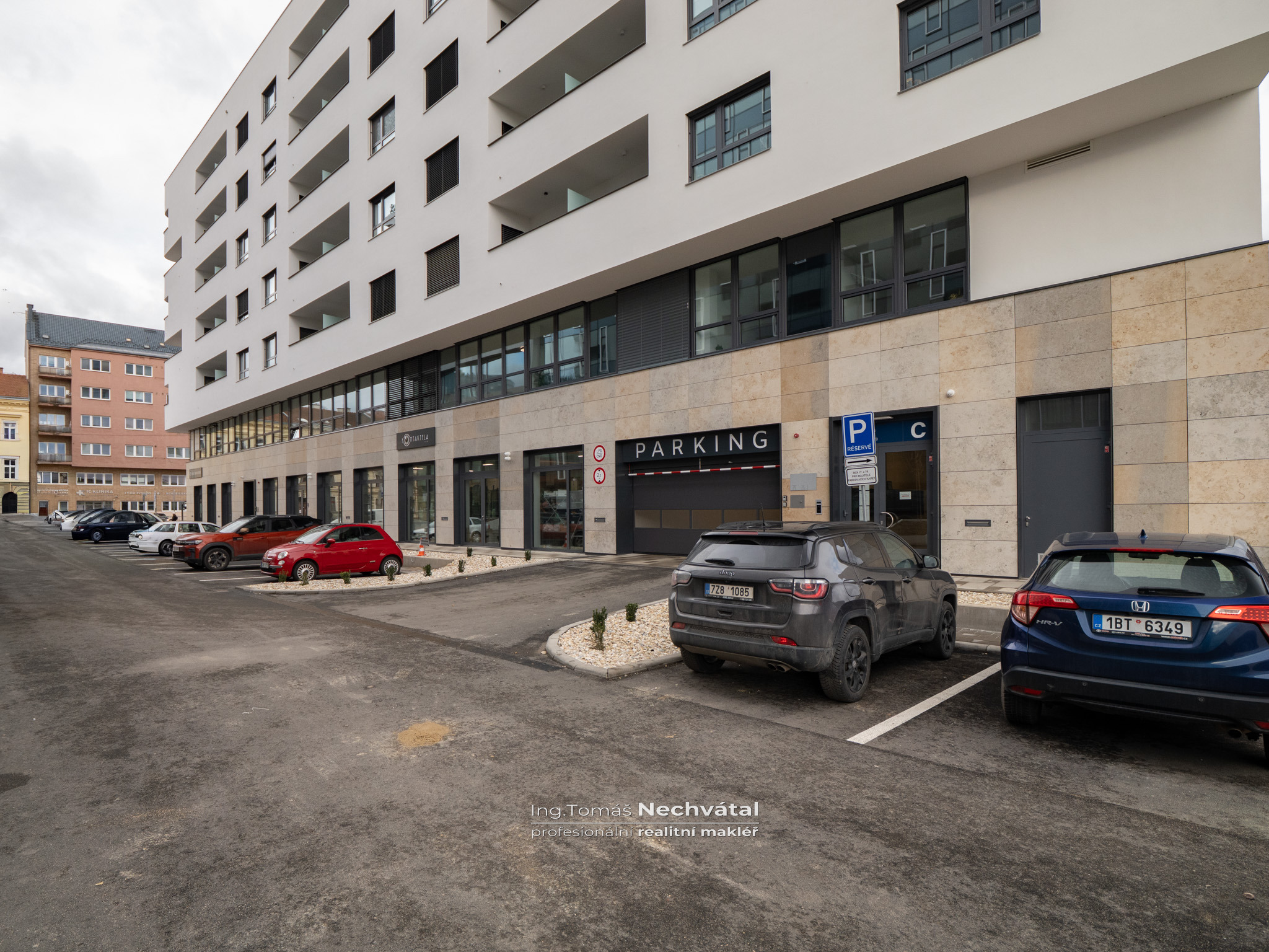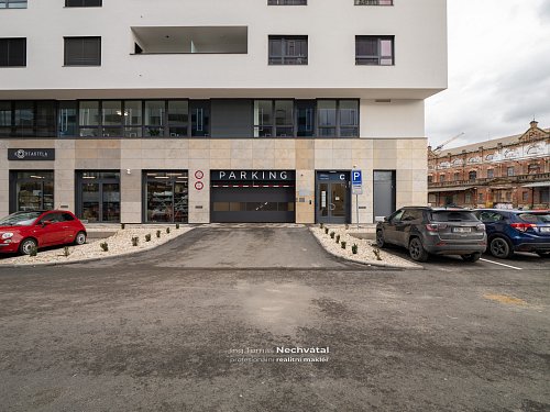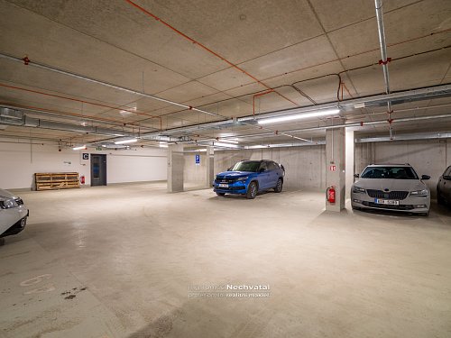 Velkým benefitem je možnost pronájmu garážového stání ve 2. podzemním podlaží přímo v domě – suchou nohou výtahem až k bytu.